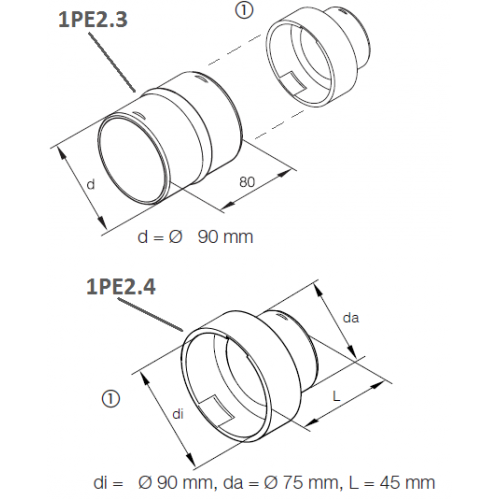 Переходник(сгон) с 75mm на 90mm